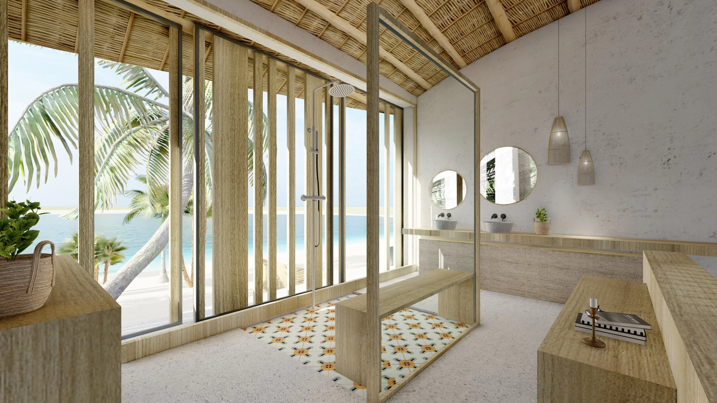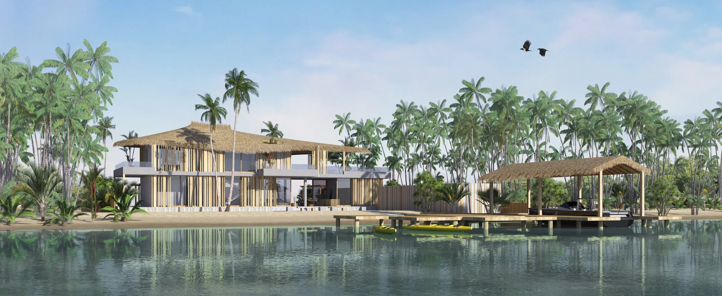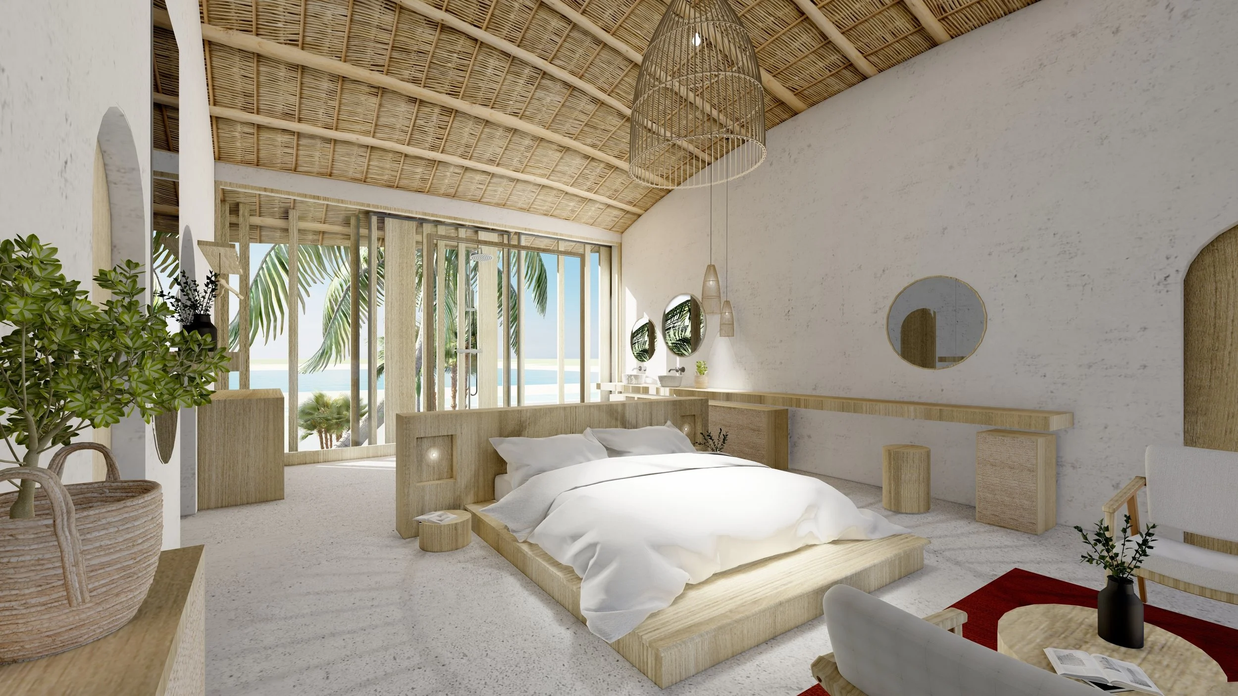 We’re blurring the barrier between inside and outside, by extending the living spaces outdoors and maximizing the openness of the house on both directions : on one side towards the lagoon and on the other to the ocean side. Also, we’re piercing through the roof and bringing in the outdoors within the house with an open-air courtyard, heart of the house.
